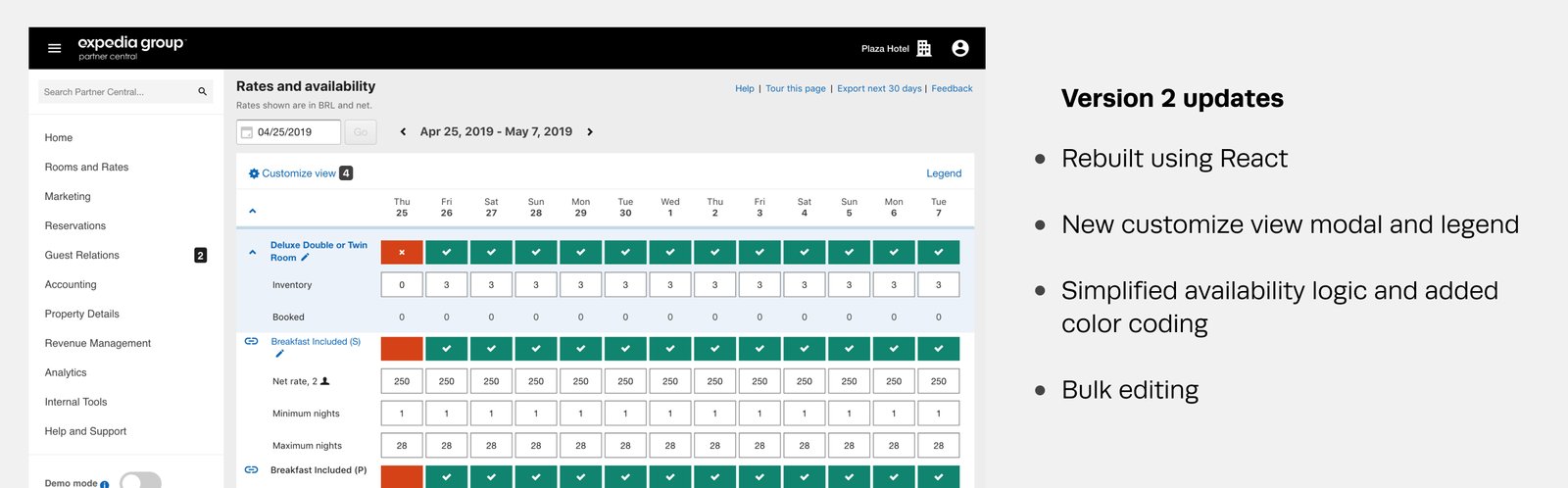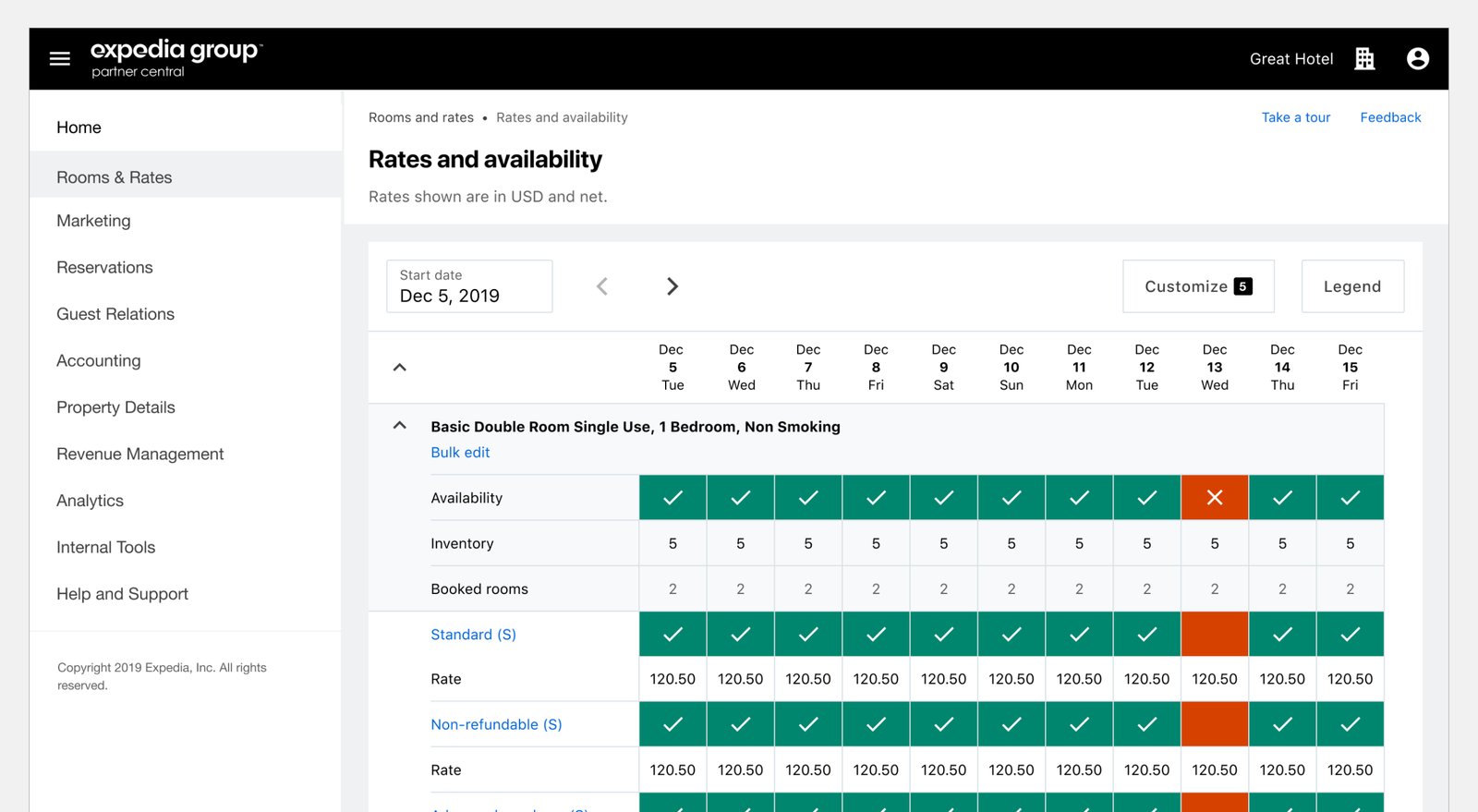 Managing rates and availability is a core task for lodging partners when using Expedia Group's Partner Central application. By improving the experience around this and related tasks, we sought to reduce customer service calls, improve time to interaction, and increase overall customer satisfaction.
