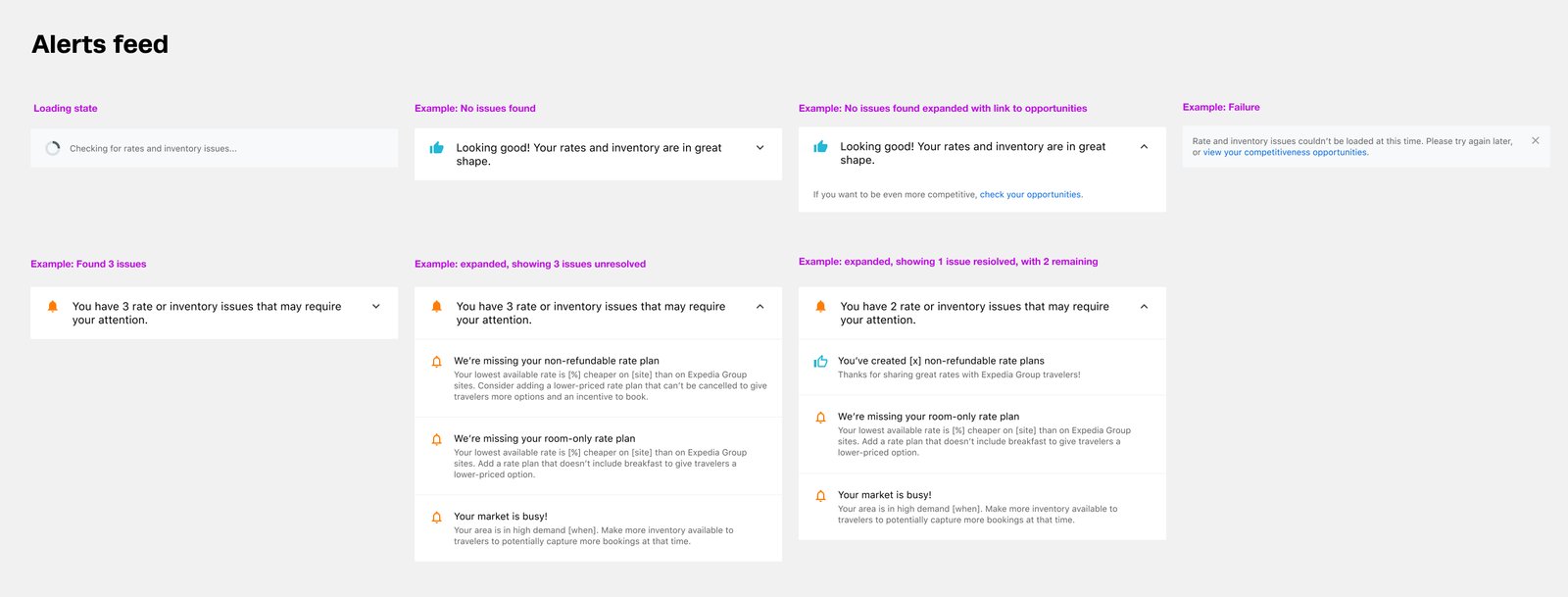 We knew from other pages that partners often developed “card blindness”, resulting in helpful suggestions being ignored. So for other rate-related issues, I created an expandable module that would allow us to quickly show any number of actionable alerts.