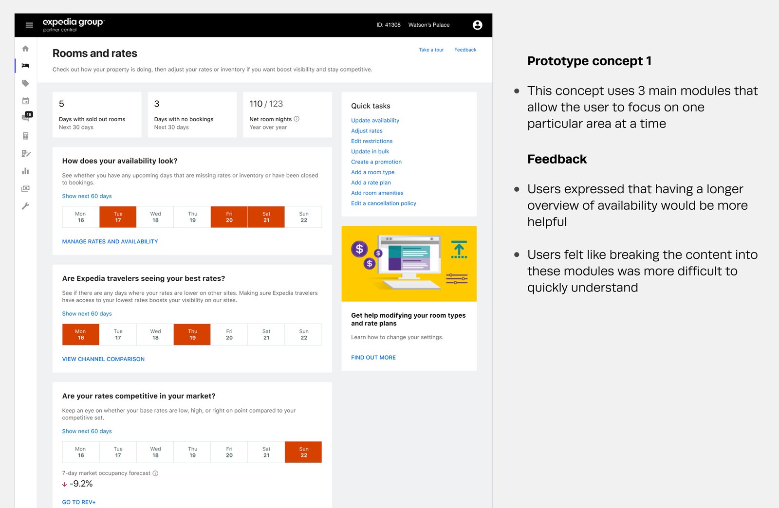 In order to address the top pain points partners had with managing their rates and availability in Partner Central, I pulled from past user research and usability studies as well as direct partner feedback.